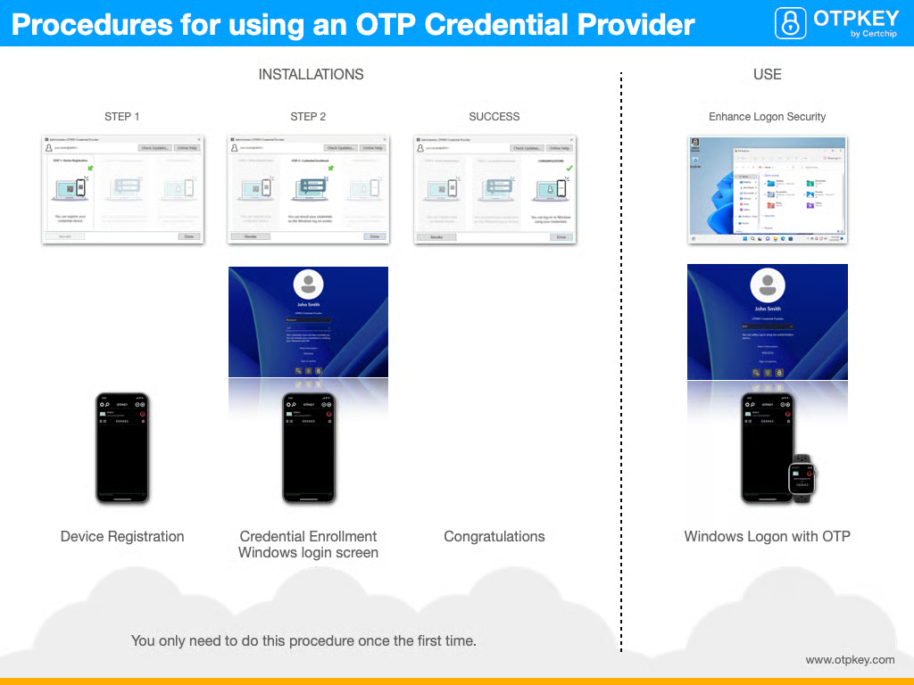 The OTP Credential Provider app enhances the security of your Windows logon account.