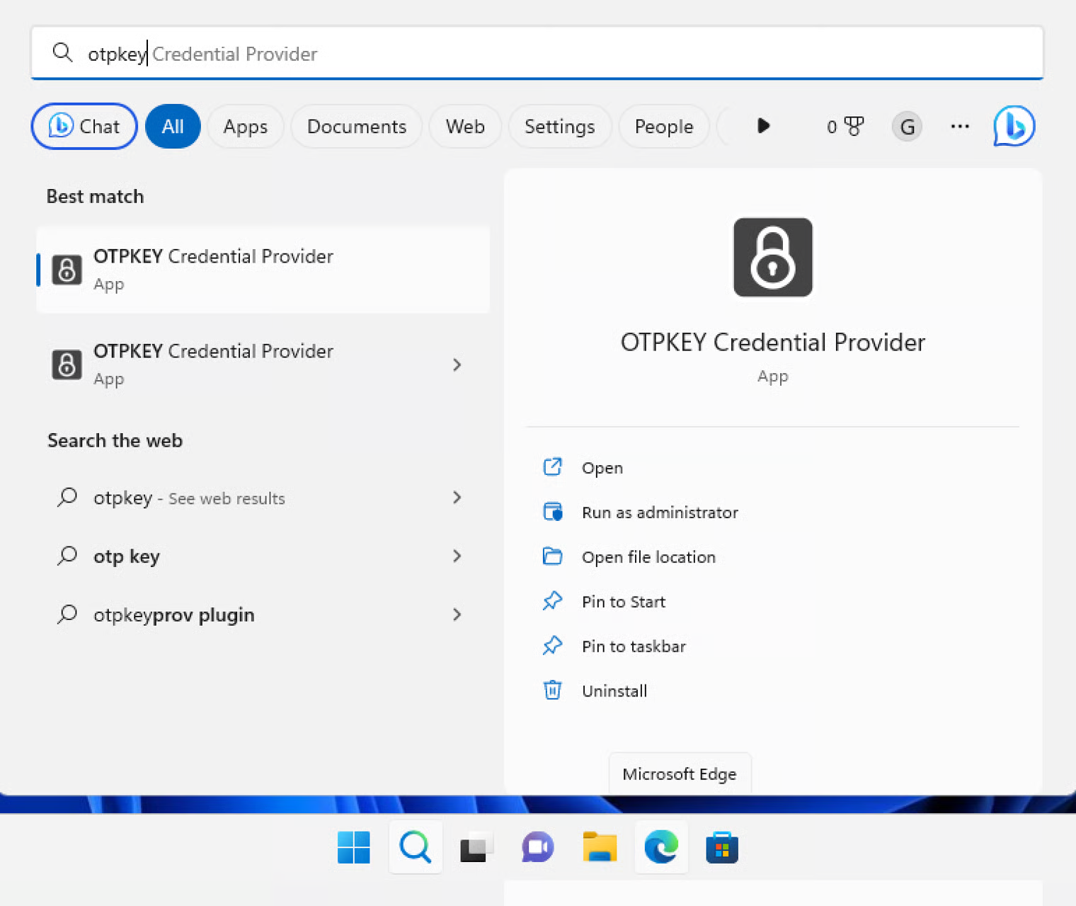 OTPKEY Credential Provider on Programs Menu