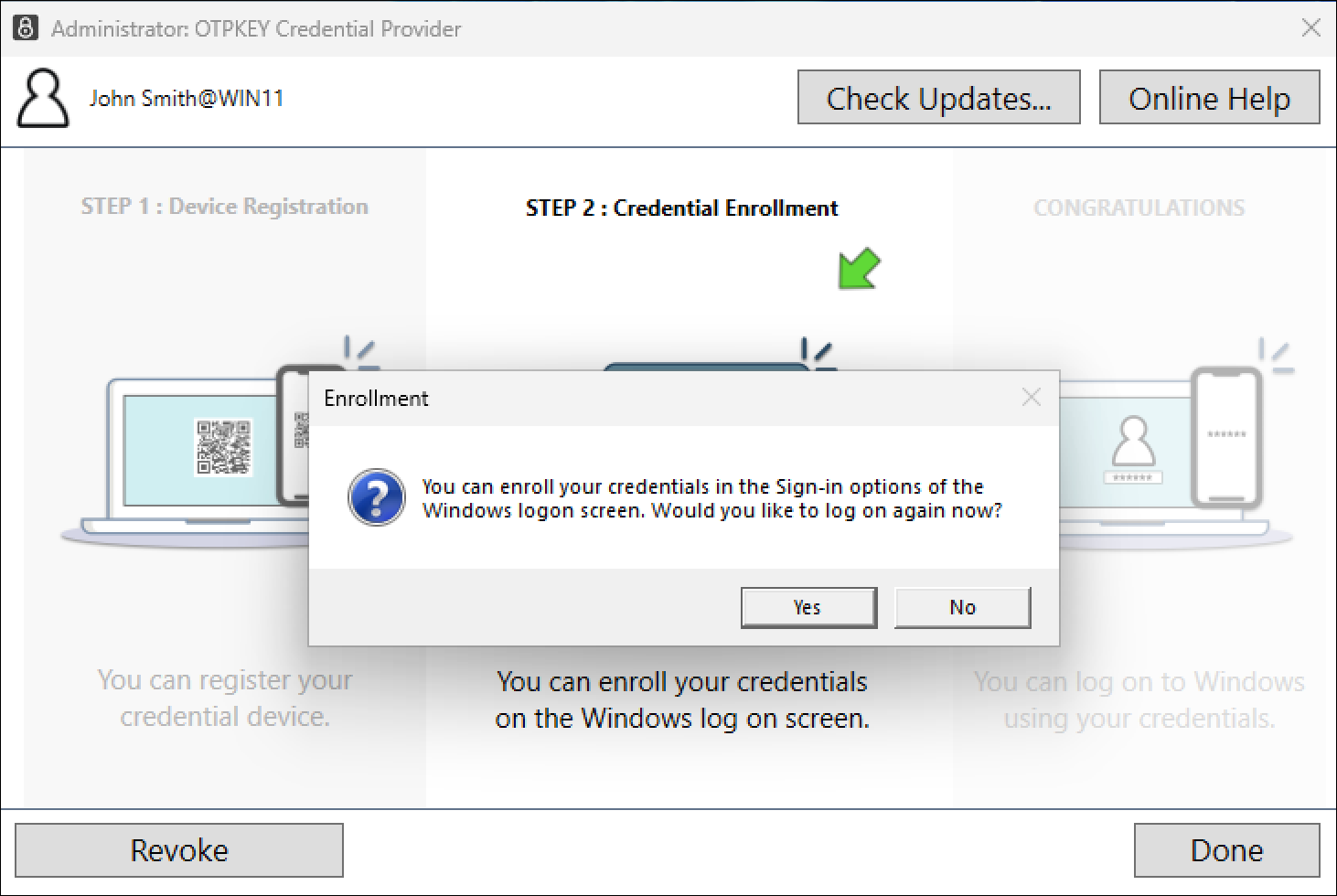 This is the process of enrolling one-time password (OTP) credentials to your Windows user account. These credentials are then used for logging in to the Windows system using the registered OTP.