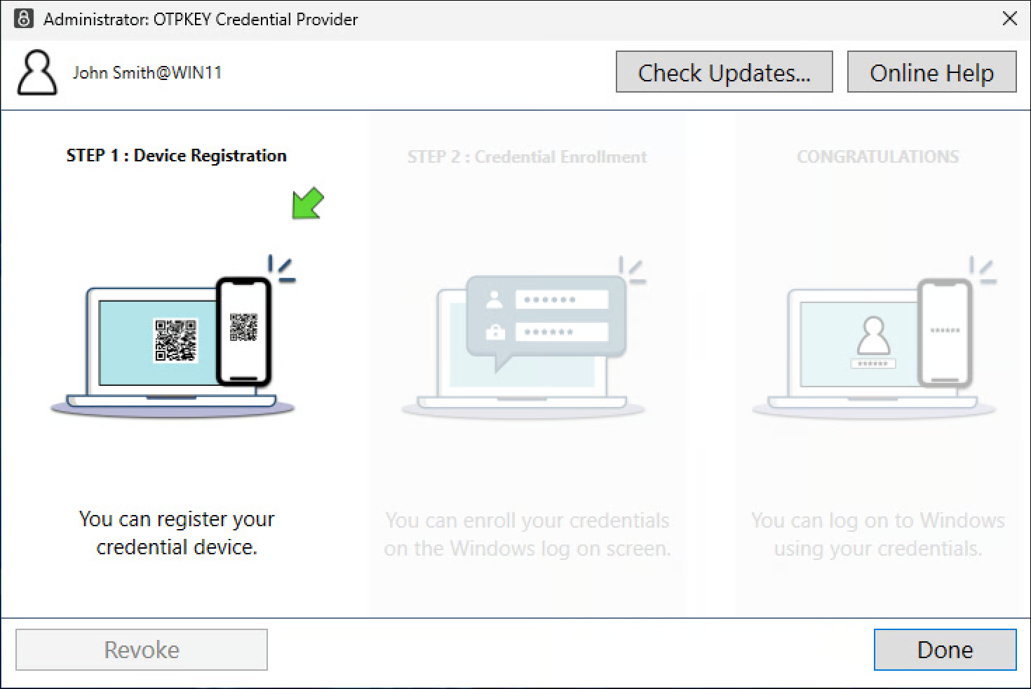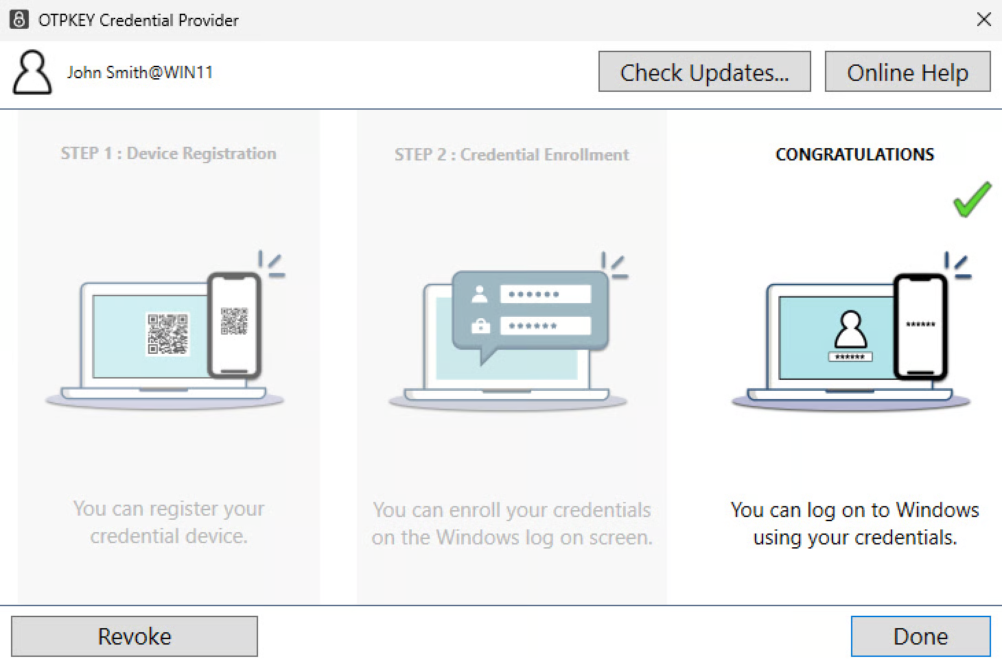 If you see the following screen on your Otpkey Credential Provider, it means that your device has been registered successfully.