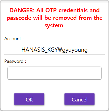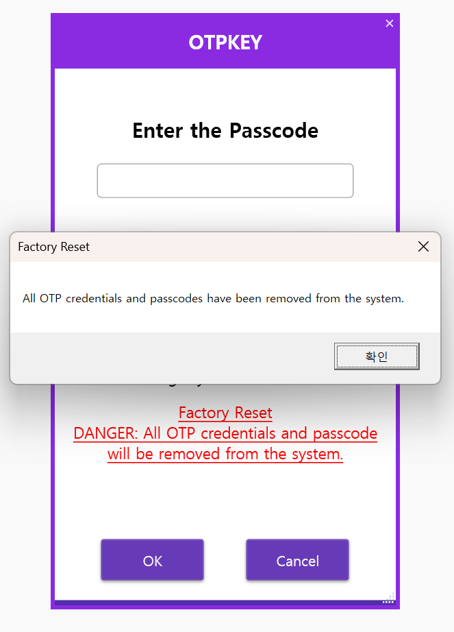 Once your Windows login is verified, all authentication keys and the passcode will be deleted from the system, and you will be able to use OTPKEY as new: